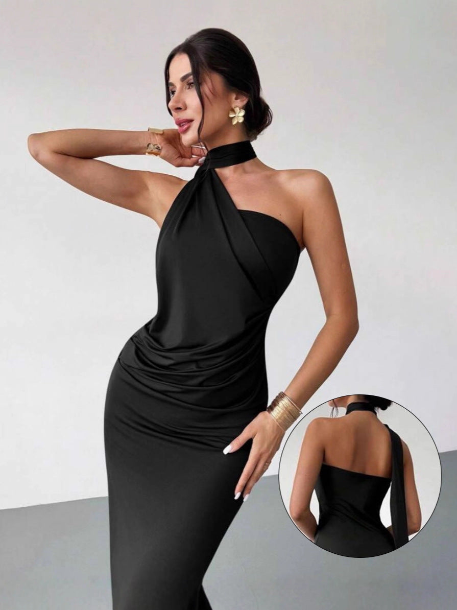 Halter-neck backless evening gown, elegant and slim-fitting dress, European and American style party dress